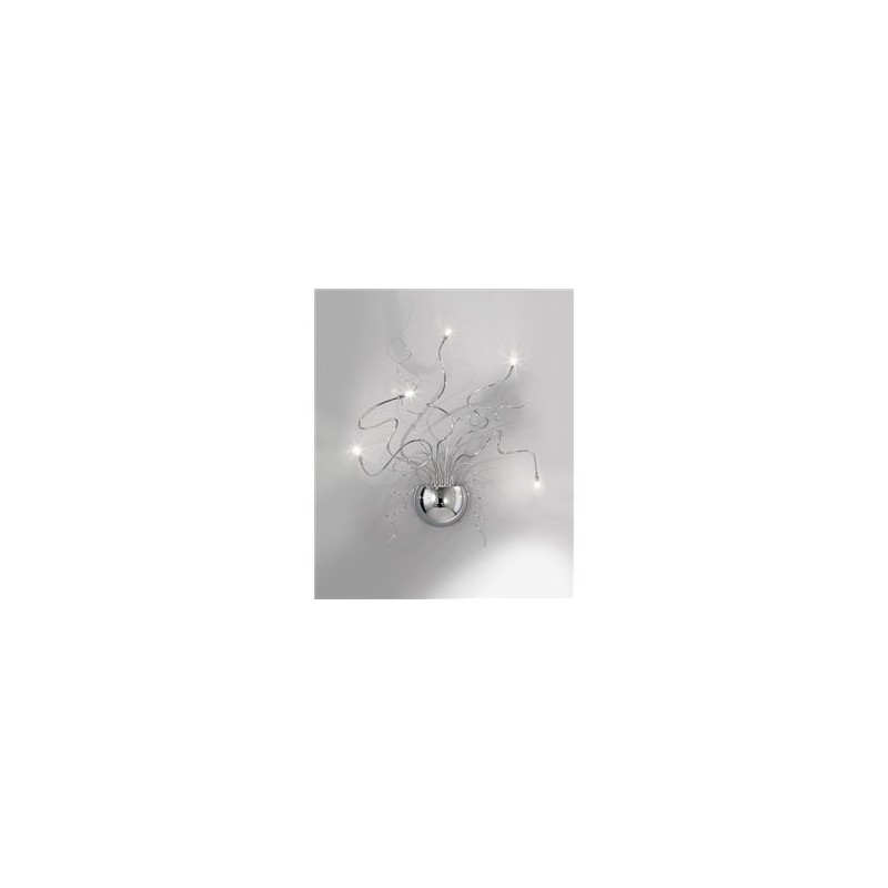 Serie composta da plafoniere e lampada da parete, in metallo cromato; tutti i braccetti sono malleabili in modo da poter creare in ogni momento un oggetto d'arredo sempre diverso.
