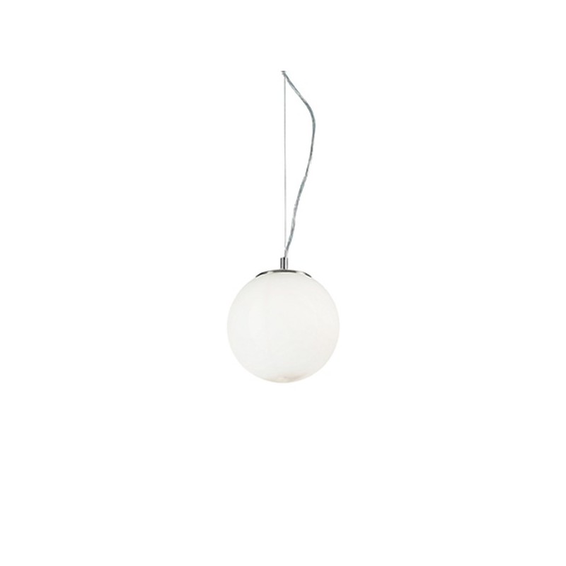 Diffusore a sfera in vetro bianco soffiato e acidato.
