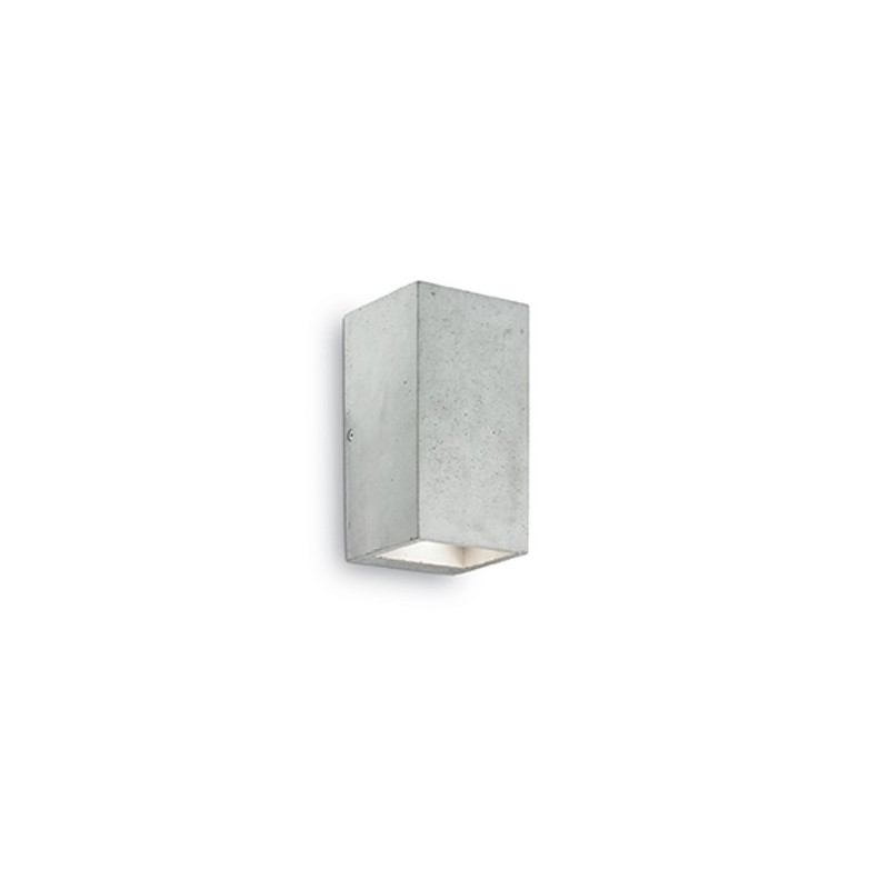Corpo luce interamente in vero cemento con supporto metallico interno.