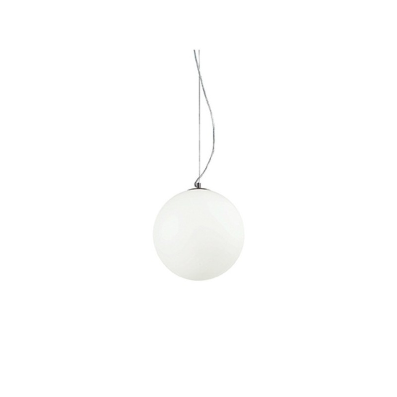 Diffusore a sfera in vetro bianco soffiato e acidato.