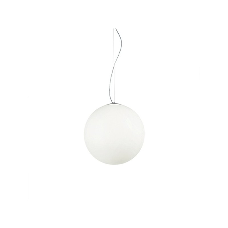 Diffusore a sfera in vetro bianco soffiato e acidato.
