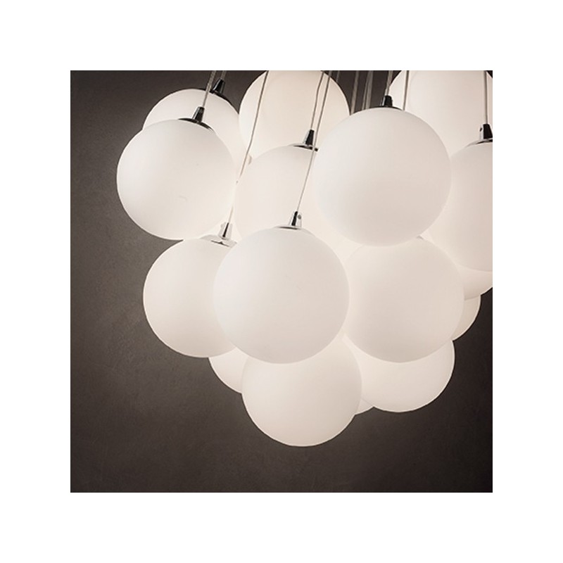 Diffusore a sfera in vetro bianco soffiato e acidato.