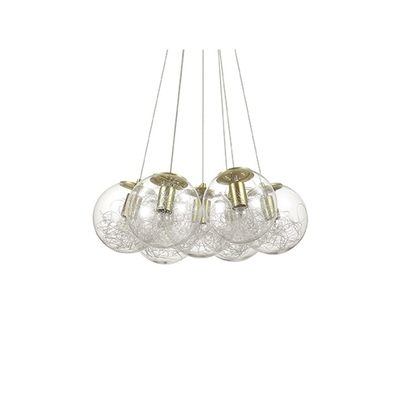 Diffusore in vetro soffiato trasparente con decoro interno in filo d’alluminio.