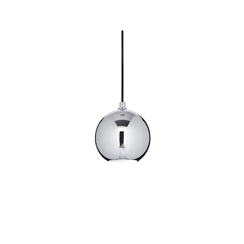 Montatura e diffusore sferico in metallo rifinito in cromo o in corten.