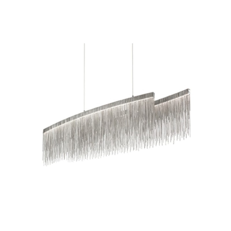 Elementi decorativi con catenine metalliche a maglia quadrata.