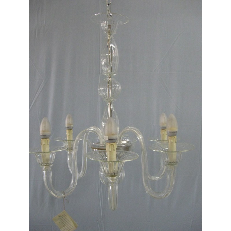 Lampadario 6 luci da 40W E14 in vetro di murano color cristallo
