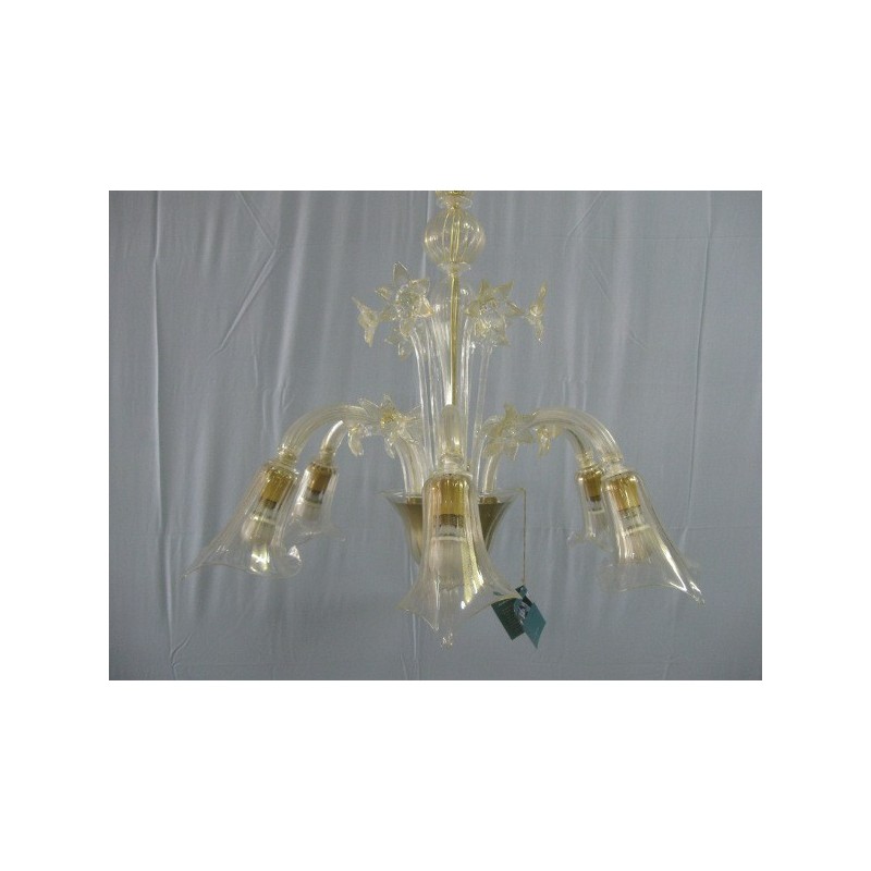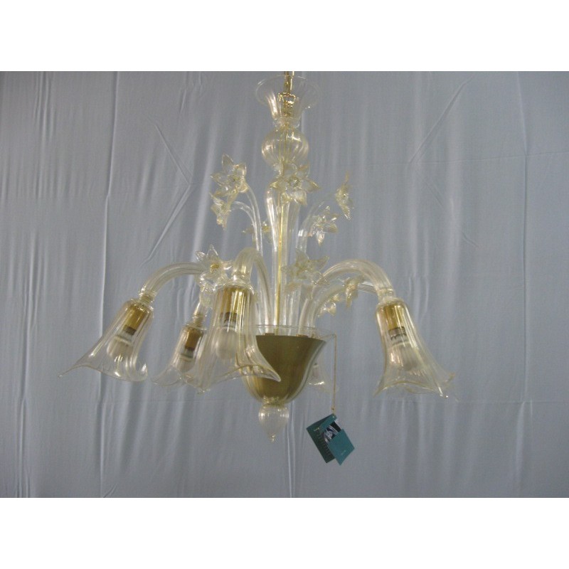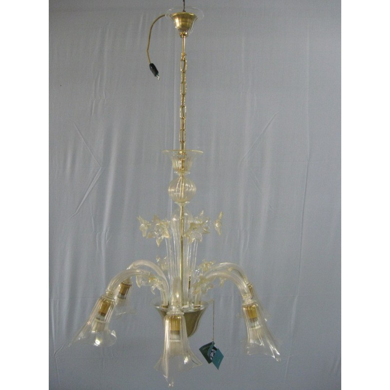 Lampadario In Vetro Di Murano Rigadin Con 6 Luci Da 40W E14