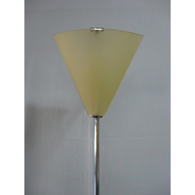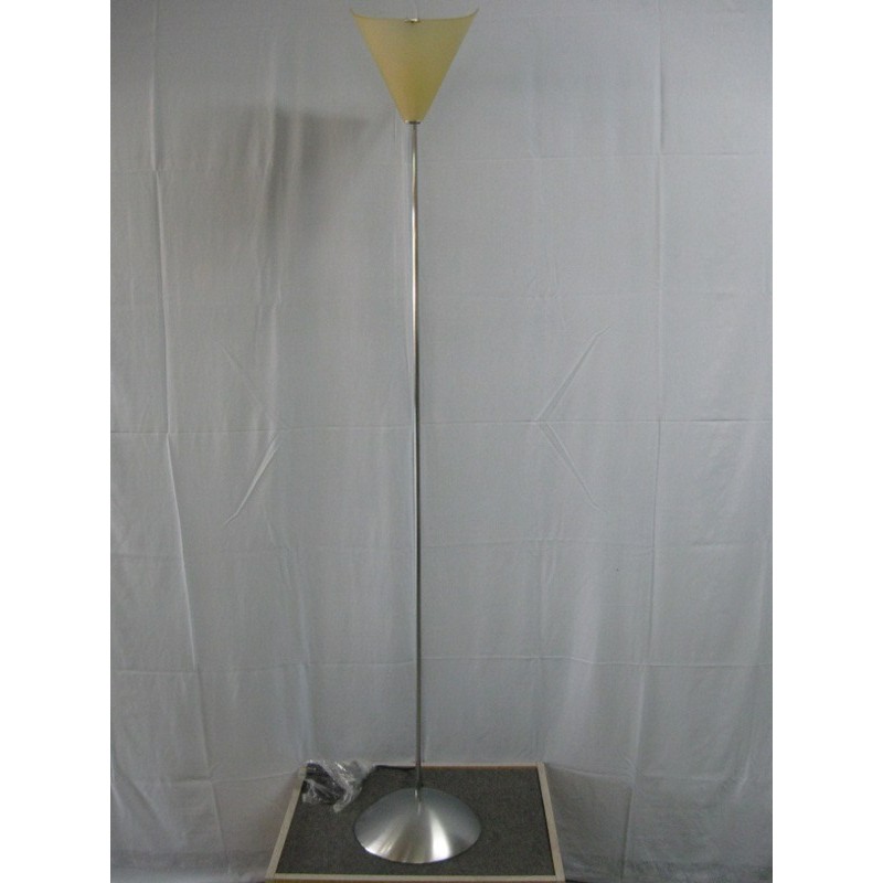 Lampda Da Terra In Metallo Color NIchel Satinato, Vetro Ambra A Righe Verticali.
