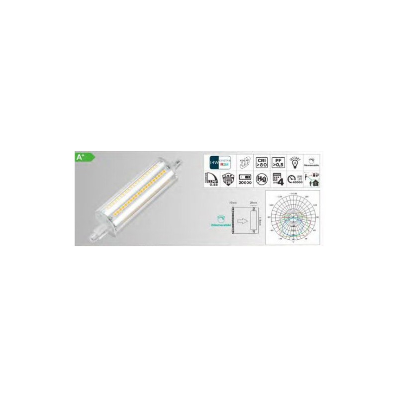 21433 | 14W | 230V | R7s | 4000 °K | 1900 lm | 180 ° | >0.5 | >80 | 28 mm | 118 mm |