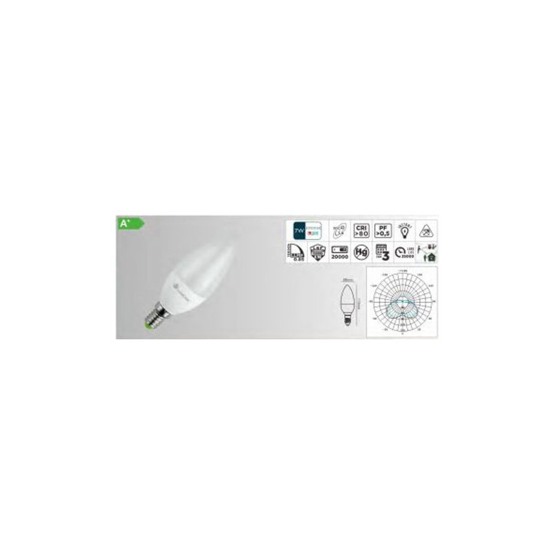 21436 | 7W | 230V | E14 | 2700 °K | 660 lm | 240 ° | >0.5 | >80 | 38 mm | 112 mm |