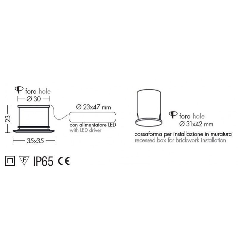 Cassaforma in dotazione, corredato di alimentatore LED da installare in remoto dalle ridotte dimensioni.