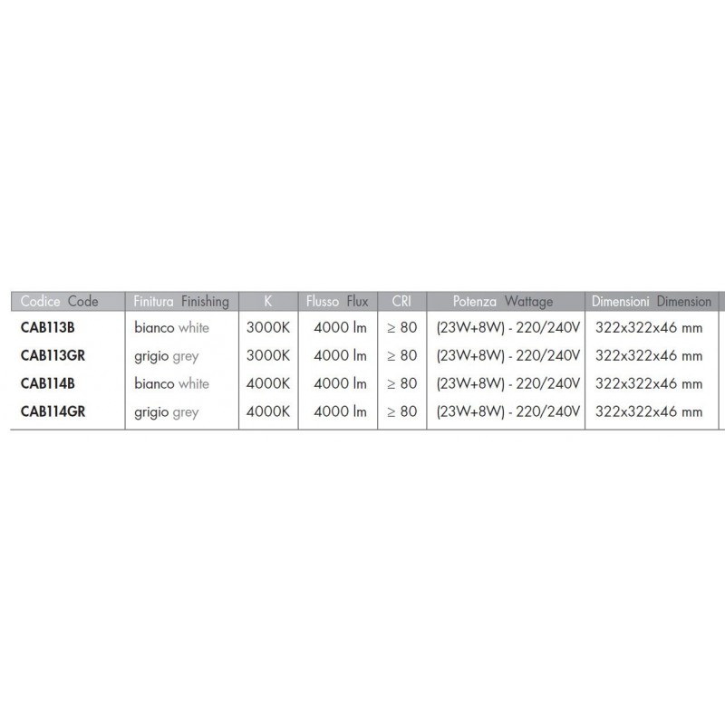 DIMENSIONE: L 322 x L 322 x H 46 mm
