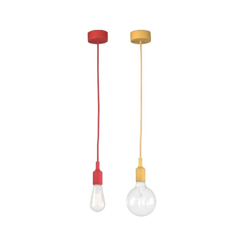 Sospensione singola con portalampada in silicone e cavo in tessuto,