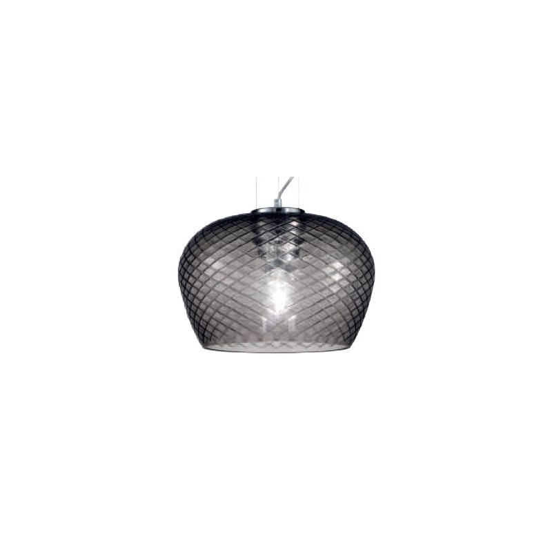Lampada a sospensione in vetro soffiato trasparente con lavorazione baloton,