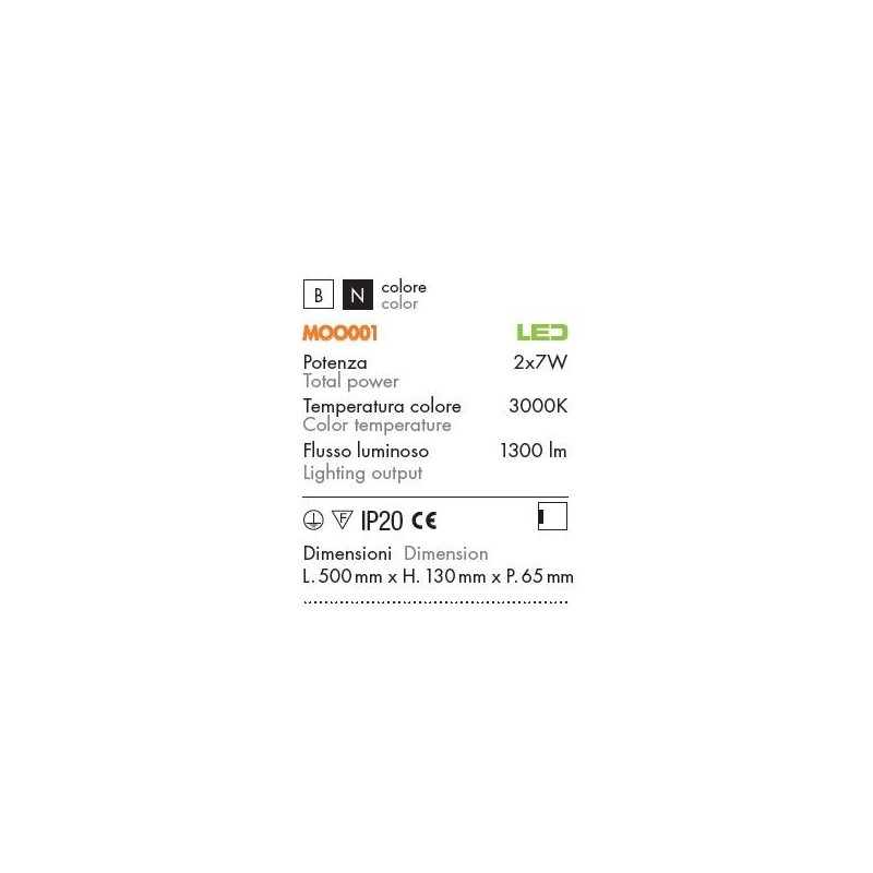 DIMENSIONI: L. 500 mm x H. 130 mm x P. 65 mm