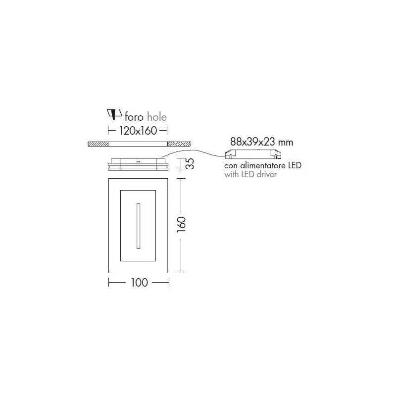 DIMENSIONI: L 100 x L 160 x P 35 mm