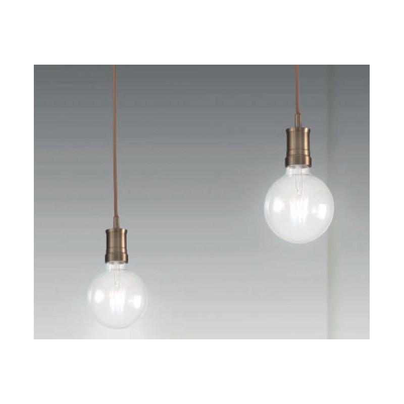 Sospensione singola con portalampada e rosone in metallo color bronzo;