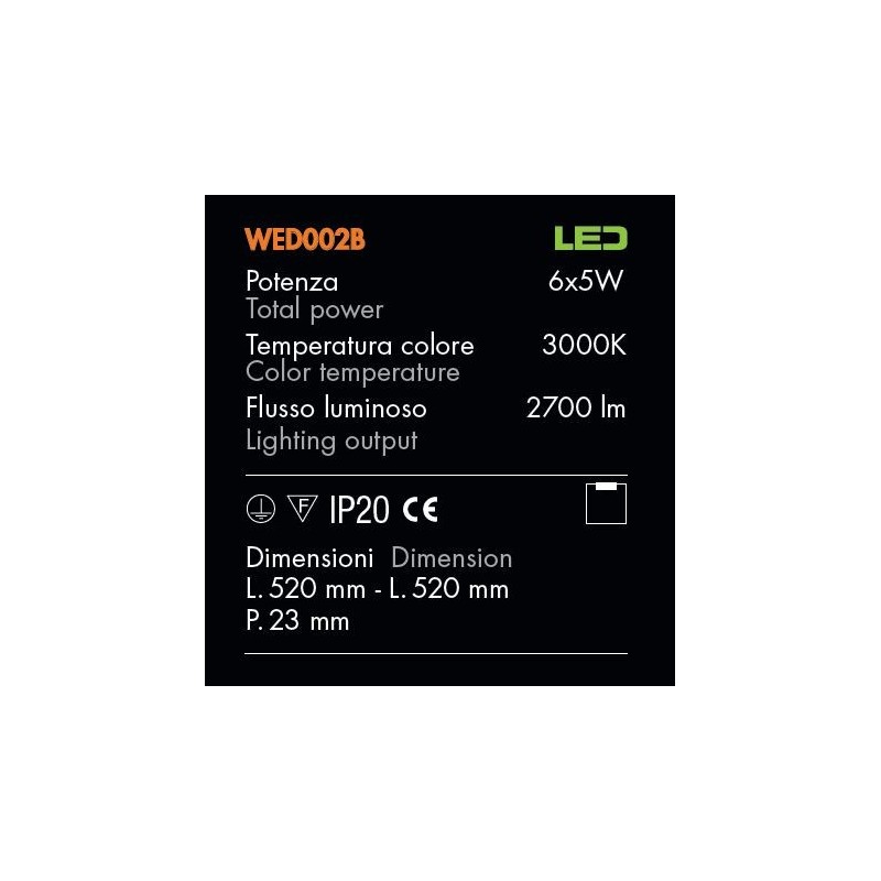 DIMENSIONI: L. 520 mm - L. 520 mm-P. 23 mm