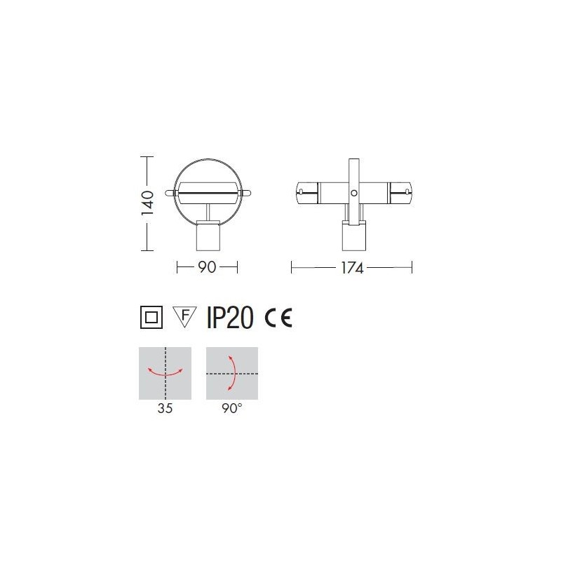 La sorgenteè regolabile e orientabile di ±90°sull'asse orizzontale e di ±35°sull'asse verticale.