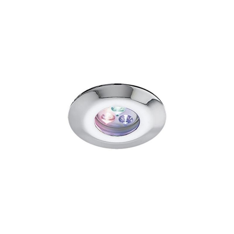 Incasso LED RGB 3x1W a 350 mA con ottica a 50°, per cartongesso. Corpo in alluminio cromato con lente in vetro extrachiaro. Grado di protezione IP44, può essere installato in ambienti con elevata umidità, bagni e anche docce. Utilizzare allimentatore LED TS.412 (vedi p. 535). In caso di utilizzo di più faretti con un unico alimentatore il collegamento deve essere in serie.